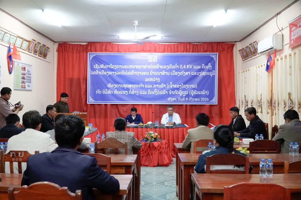On 9 January 2026, Hongsa Power Company Limited participated in the contract signing ceremony for the Low-Voltage Power Distribution System Expansion Project (0.4 kV) and the installation of permanent street lighting at Ban Nasarn, Hongsa District, following an invitation from the Department of Industry and Commerce, Hongsa District, to support the development of local electrical infrastructure.