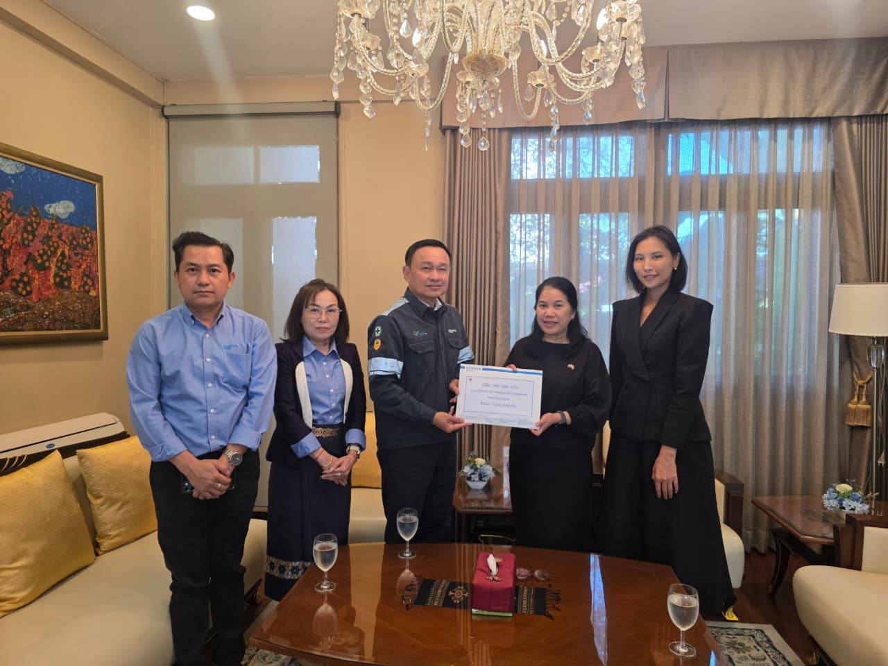 The donation was graciously received by Ms. Jirasaya Peeranont, Deputy Chief of Mission, Royal Thai Embassy in Vientiane, who expressed her appreciation to the Company on this meaningful occasion.