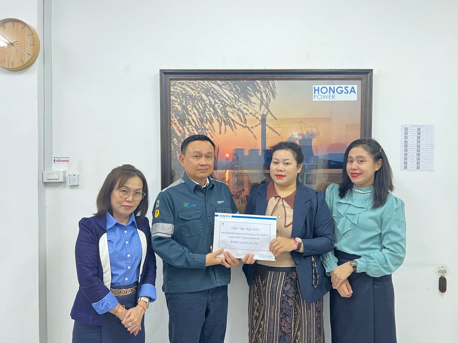 On 1 December 2025, Ms. Wannarat Panupas, Head of the Vientiane Office, Government Relations Division, together with her team, represented Hongsa Power Company Limited in presenting a financial contribution of 13 million LAK to support the 3rd General Assembly of the Party Unit of the Enterprise Protection Department, Ministry of Industry and Commerce, held in Vientiane Capital.